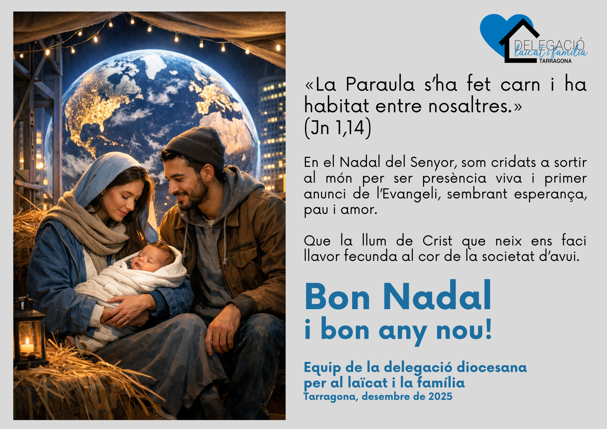 L’equip de la Delegació diocesana per al laïcat i la família us desitja un molt bon Nadal i un bon inici d’any nou.
